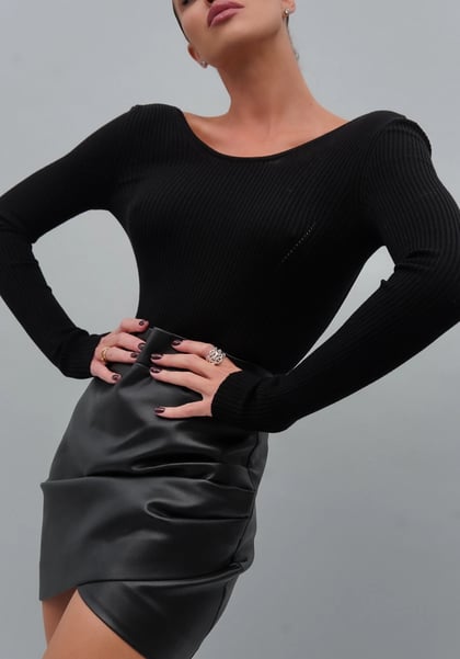 Виготовлення з високоякісної віскози із додаванням еліт стрейчу забезпечує ідеальну посадку, підкреслюючи ваші форми. Безшовна технологія виробництва без використання оверлоку . Відкрита спинка додає відчуття витонченості та сексуальності, роблячи цей боді ідеальним вибором для особливих випадків або стильних повсякденних образів.