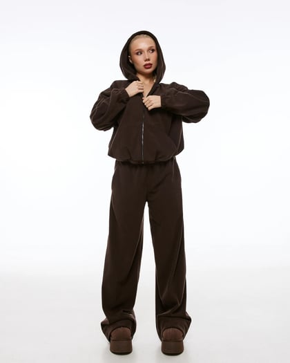 Худі з плюшевого флісу з начосом — ідеальний вибір для прохолодної пори року. Матеріал преміум-якості забезпечує максимальний комфорт і тепло, створюючи відчуття затишку протягом усього дня. Об’ємний крій з опущеною лінією плеча додає актуального вигляду, а функціональний капюшон забезпечує додатковий захист від холоду.