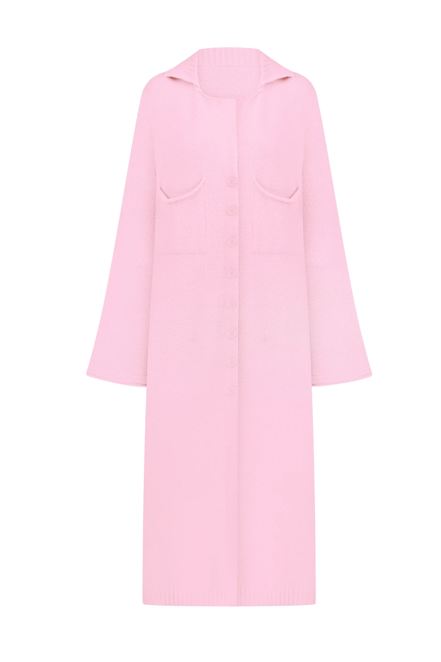 Подовжений силует візуально витягує фігуру, створюючи стрункий образ, а акуратні накладні кишені та розкльошені рукави надають виробу завершеного вигляду. Цей кардиган легко інтегрується у будь-який гардероб — від затишних домашніх сетів до стильних міських луків.