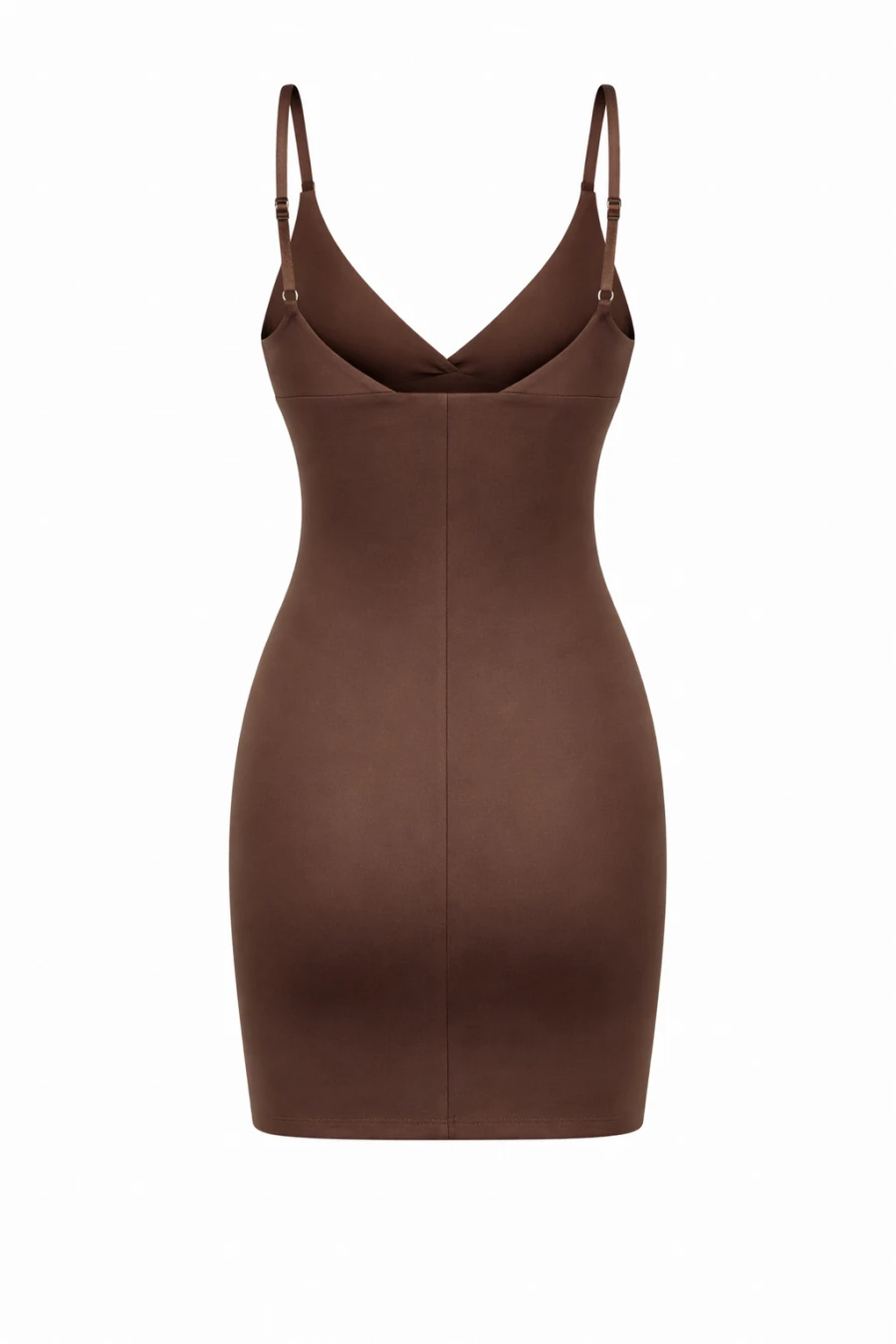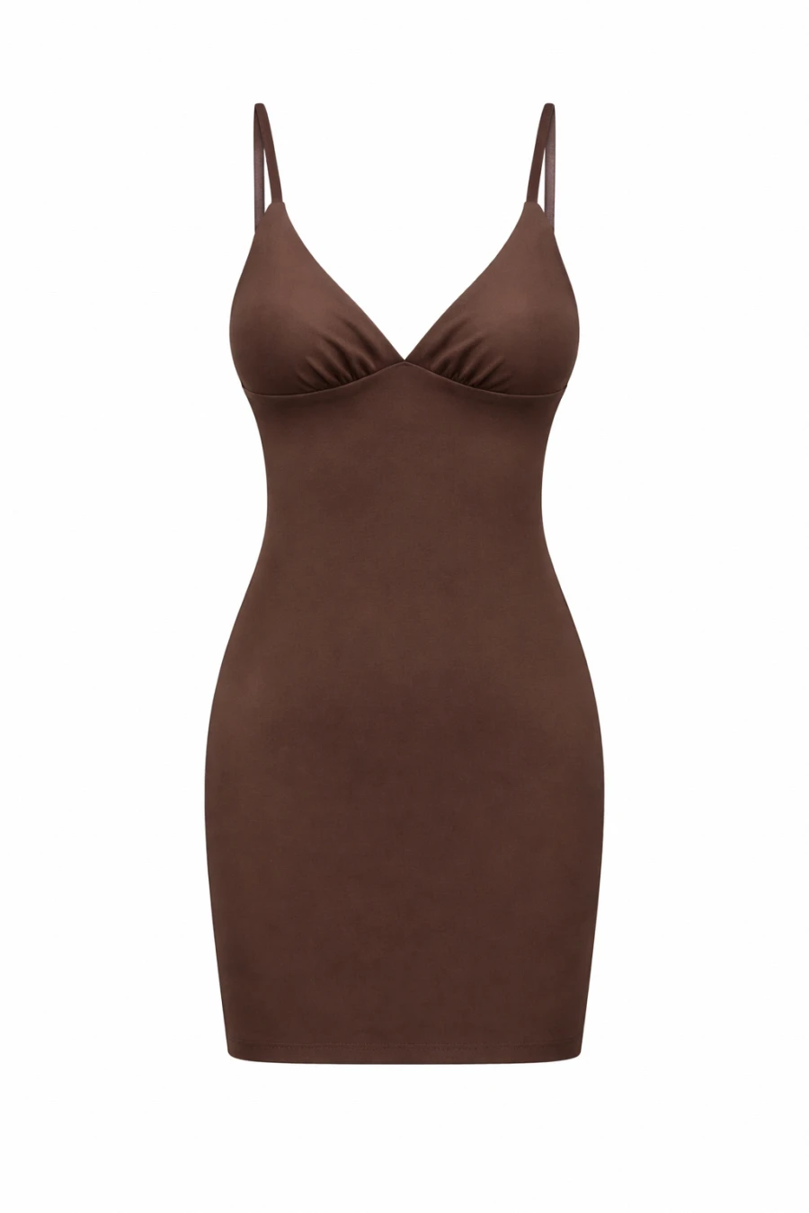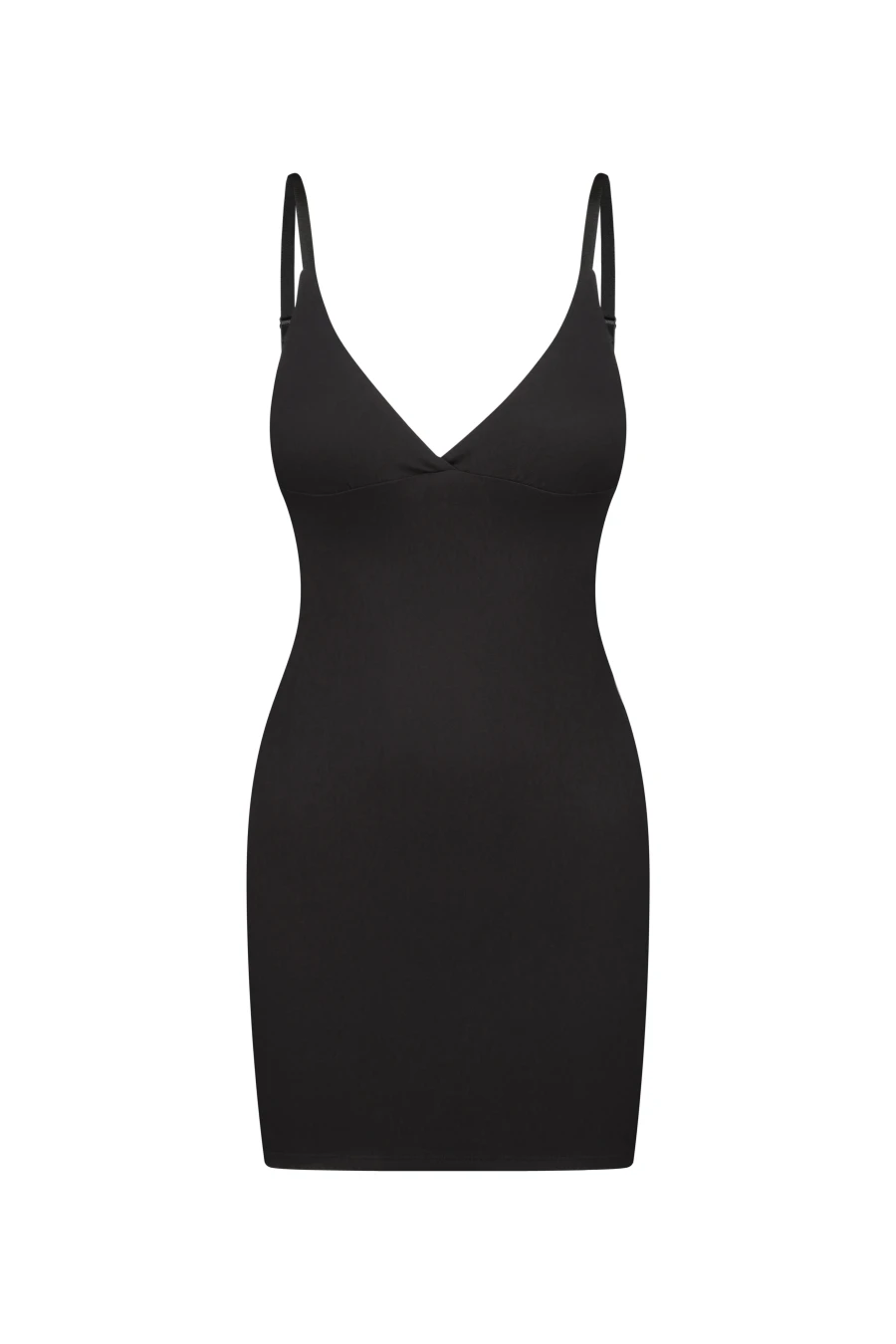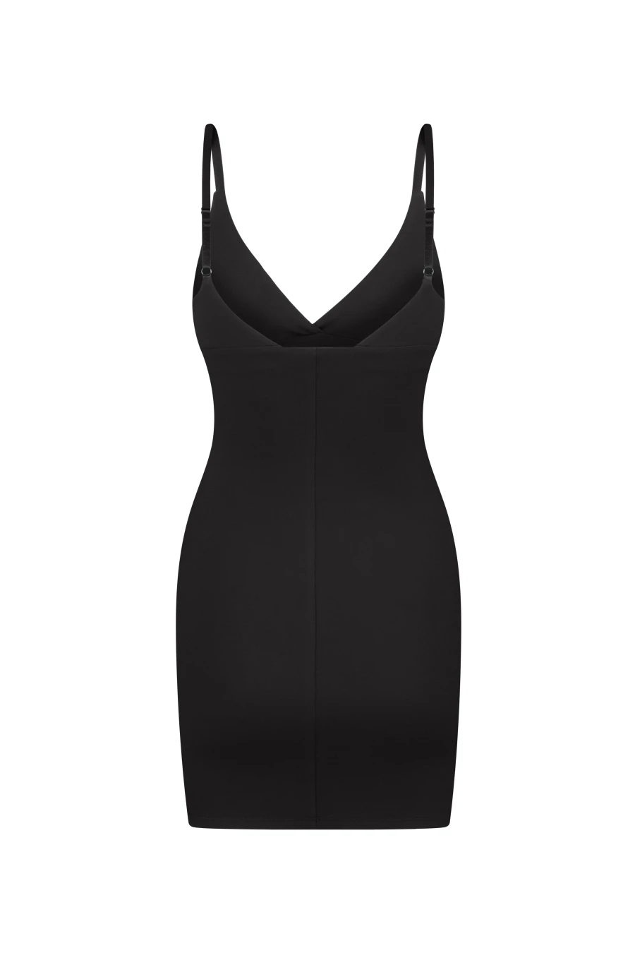 Сучасна інтерпретація маленької чорної сукні — легка комбінація з делікатними бретелями та ідеальною посадкою по фігурі. Мʼякий еластичний матеріал комфортно огортає тіло, створюючи гладкий силует та підкреслюючи лінії. V-подібний виріз акцентує зону декольте, а регульовані бретелі дозволяють налаштувати посадку під себе.