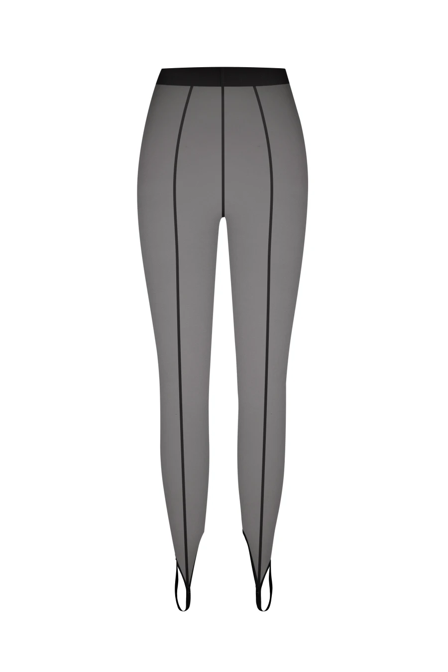 Леггінси-сітка зі штрипками MLN GOLD — напівпрозора еластична тканина, високий пояс із золотим логотипом та подовжуючі вертикальні шви. Ідеальний акцент для сучасного total black look.