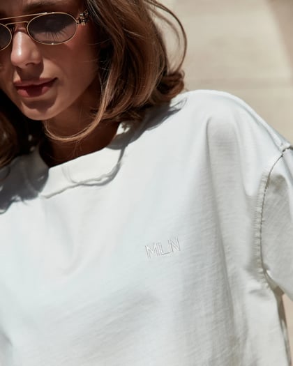 Спортивні шорти з мʼякого трикотажу. Висока посадка, широка резинка на талії. Позаду — накладна кишеня з вишивкою MLN.