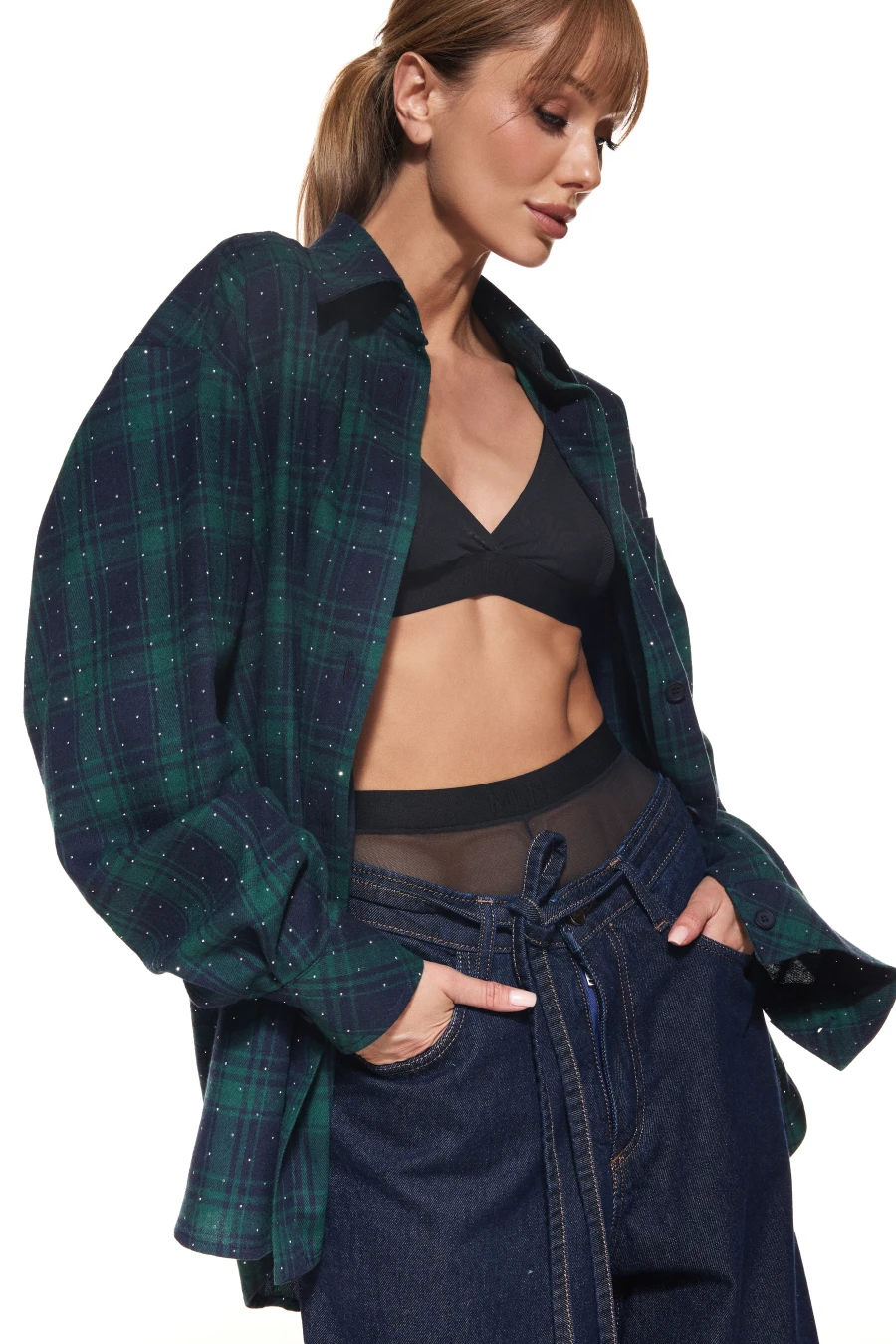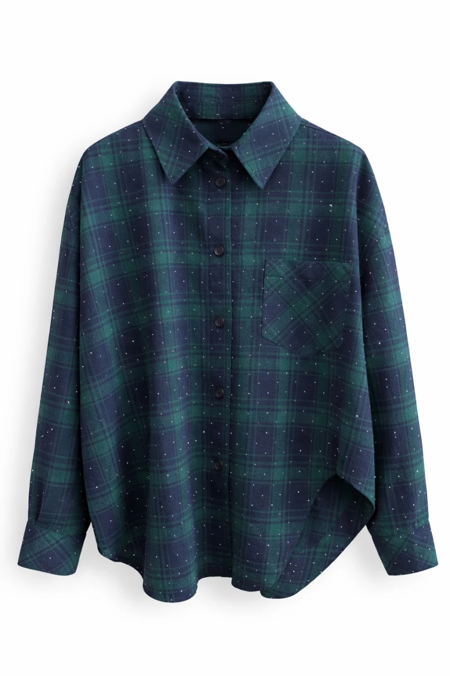 Глибока клітинка виглядає дорого та легко комбінується з денімом, шкірою, трикотажем або мінімалістичними костюмами. Делікатний точковий принт додає сучасності, не перевантажуючи образ.
