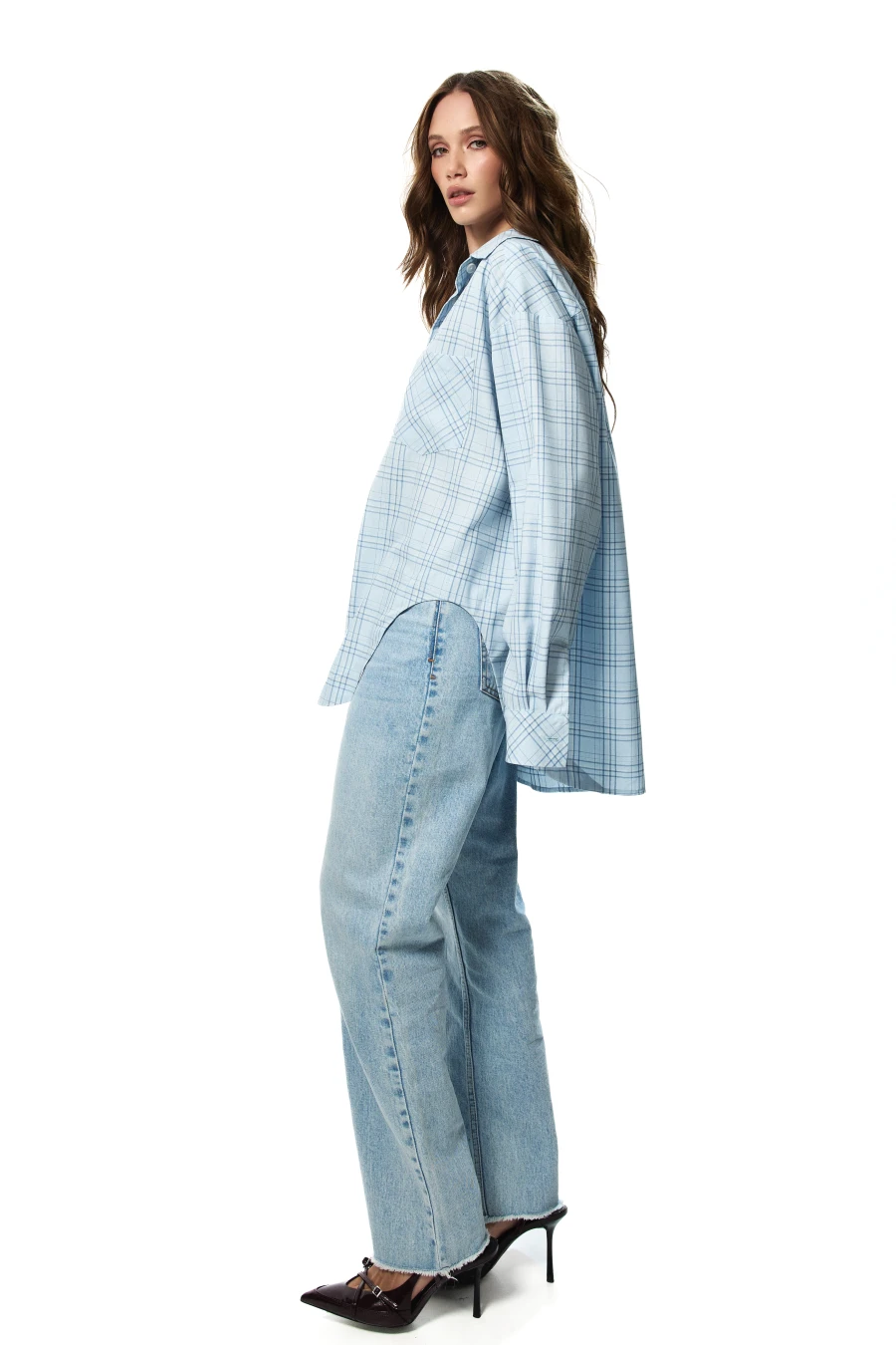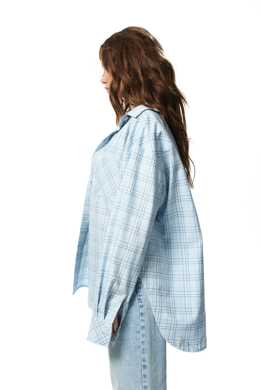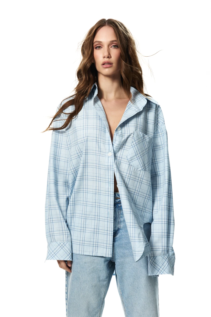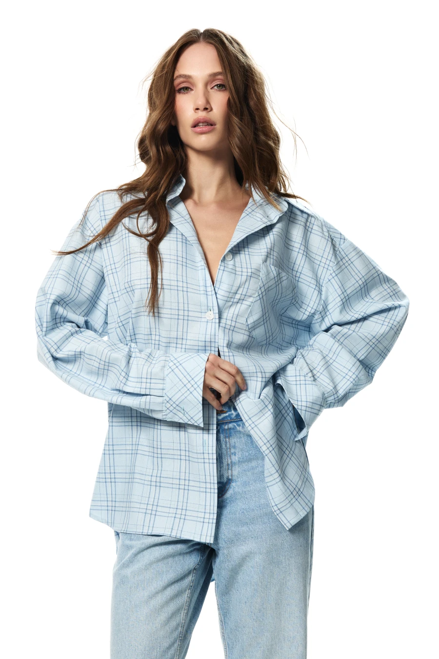 Розслаблена сорочка з м’якої тканини в делікатну клітинку — для образів, у яких є легкість і правильний настрій. Вільний силует, спущена лінія плеча та подовжений рукав роблять посадку невимушеною, а тонкий малюнок додає речі інтелігентності. Її можна носити розстібнутою поверх топа, недбало заправленою в денім або як самостійну частину образу. Саме та річ, яка робить комплект сучасним без зайвих зусиль.