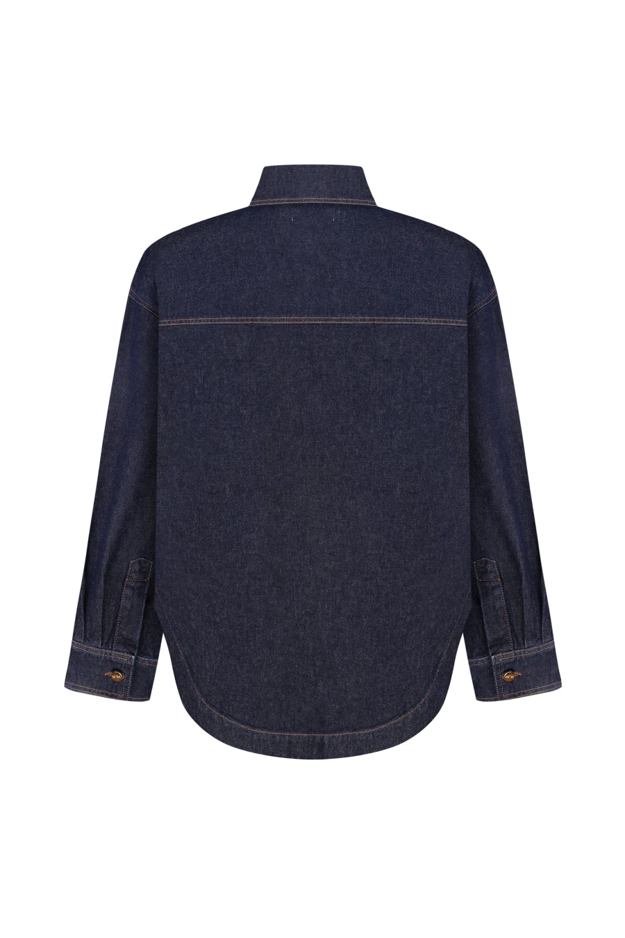 Подовжена сорочка з деніму. Модель виконана в oversize крої з об’ємними рукавами, закругленими краями та фірмовою фурнітурою MLN. Завдяки м’якій текстурі деніму виріб комфортно носиться як самостійно, так і як легка куртка у багатошарових образах.