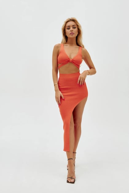 Облягаюча трикотажниа спідниця в довжині міді. Виготовлена з високоякісної тонкої віскози із додаванням стрейчу, що запобігає витягуванню під час носіння та чудово підходить для літньої пори. Чудово поєднується в тандемі з топом Gabriel. Оригінальний продукт виготовлений в Україні.