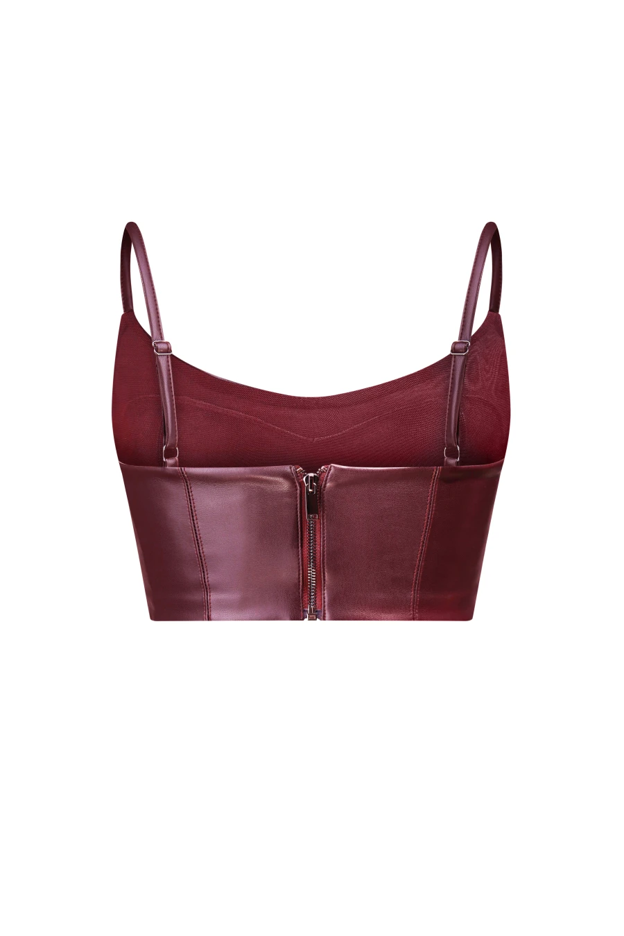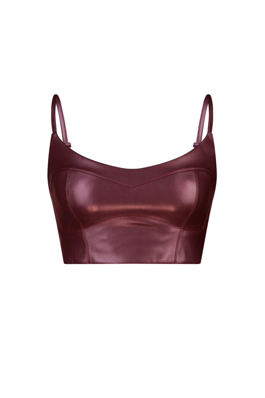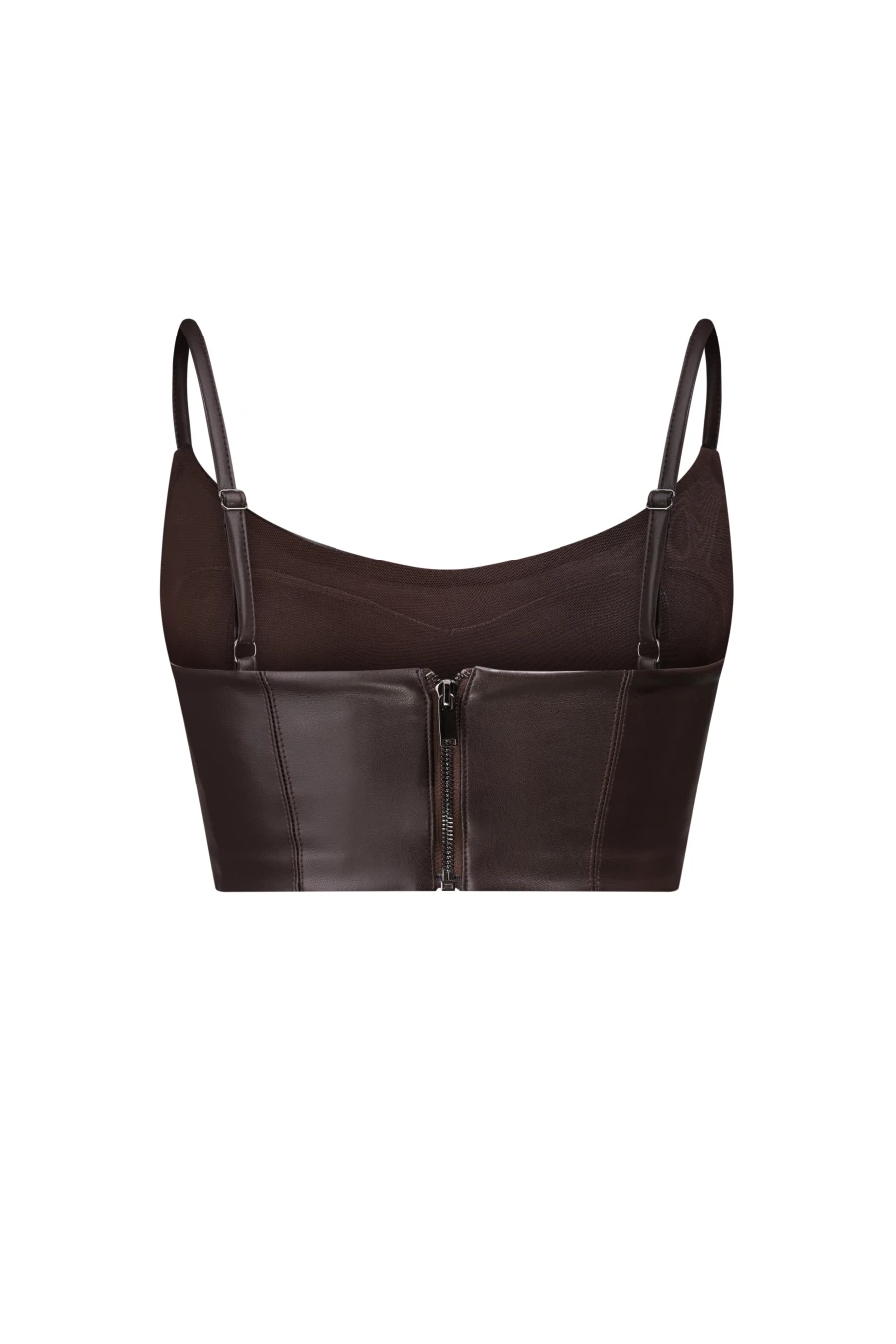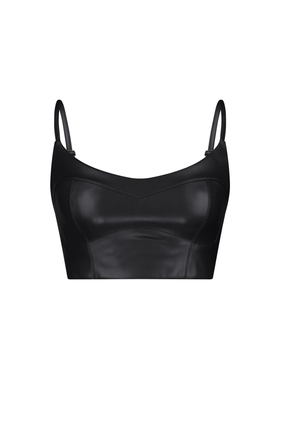 Топ-корсет виконаний із м’якої стрейчевої екошкіри. Модель має лаконічний крій та фігурну лінію декольте.