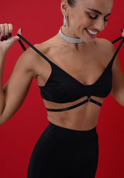 Корсетний топ із щільного матового біфлексу. Виріб має довгі рукави та декор у вигляді стразового шнура, що зав'язується на спинці. Модель топу чудово пасує до леггінсів Chloe, а також джинсів та виробів з екошкіри.
